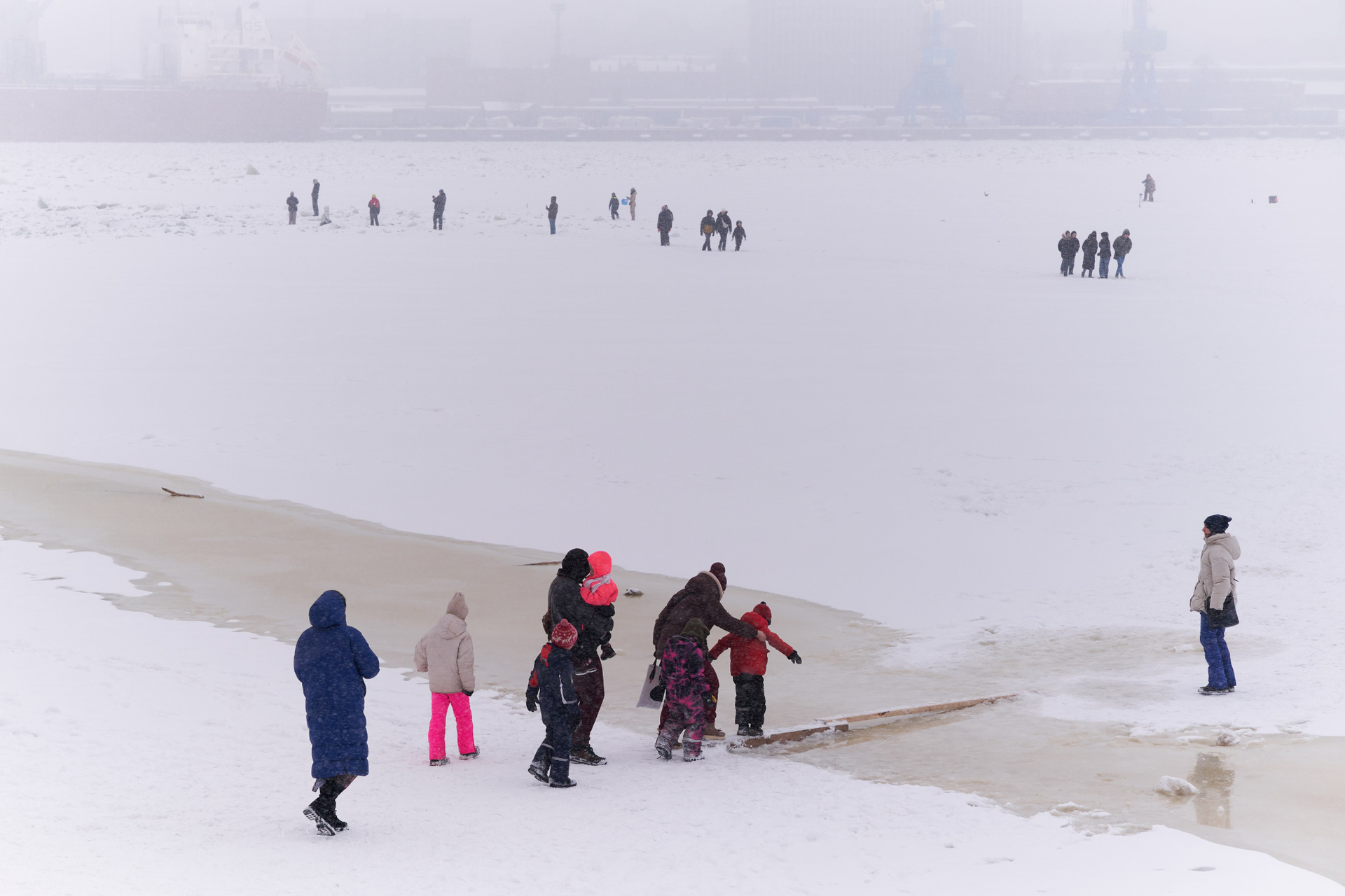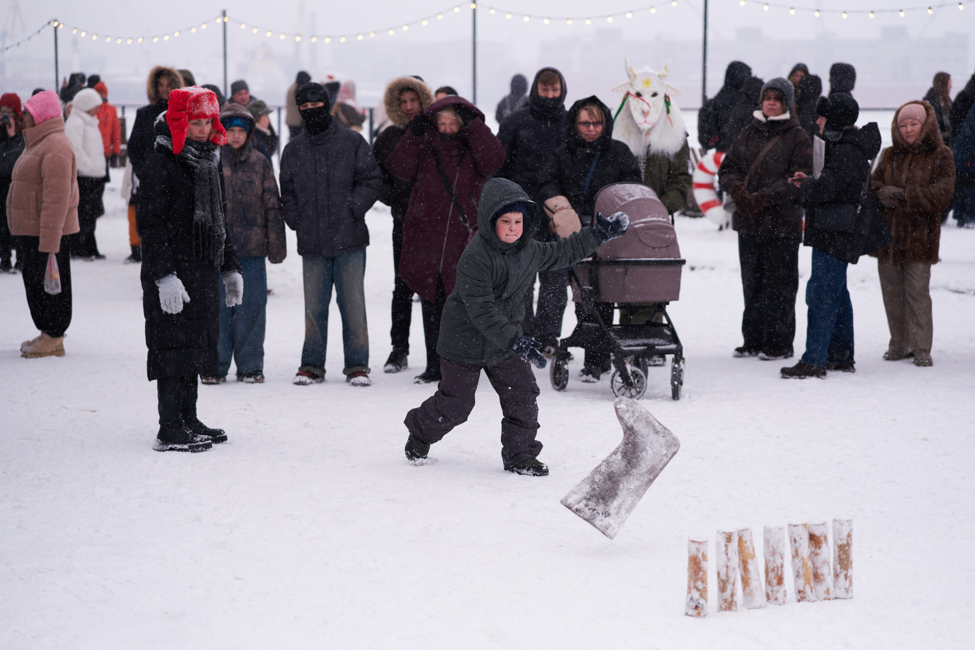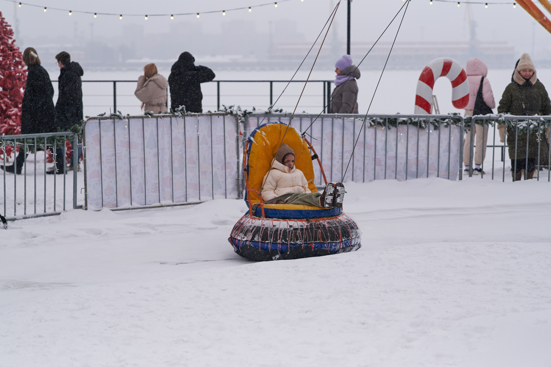 Катание с горки зимой в Санкт-Петербурге — фотосерия